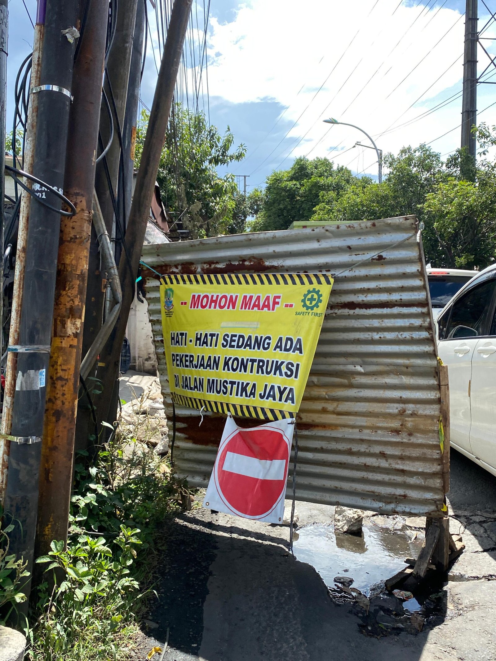 Pihak pelaksana proyek telah memasang papan peringatan berwarna kuning di lokasi. Papan tersebut berisi instruksi agar pengguna jalan memperlambat kendaraan dan tetap waspada. Selain itu, rambu dilarang masuk terpasang di sebagian ruas jalan yang sedang diperbaiki. Langkah ini dilakukan untuk melindungi pekerja konstruksi sekaligus menjaga keselamatan pengendara.